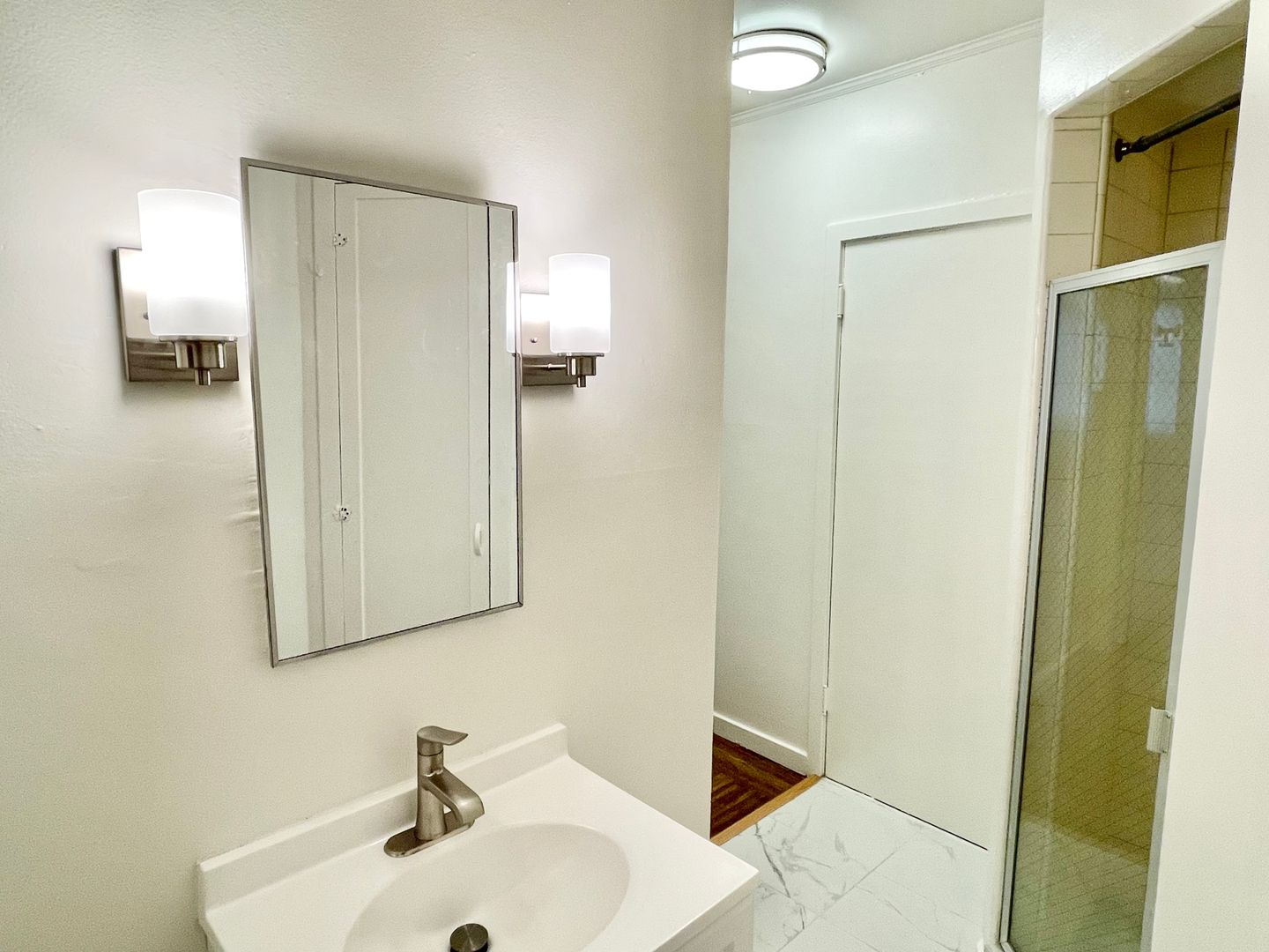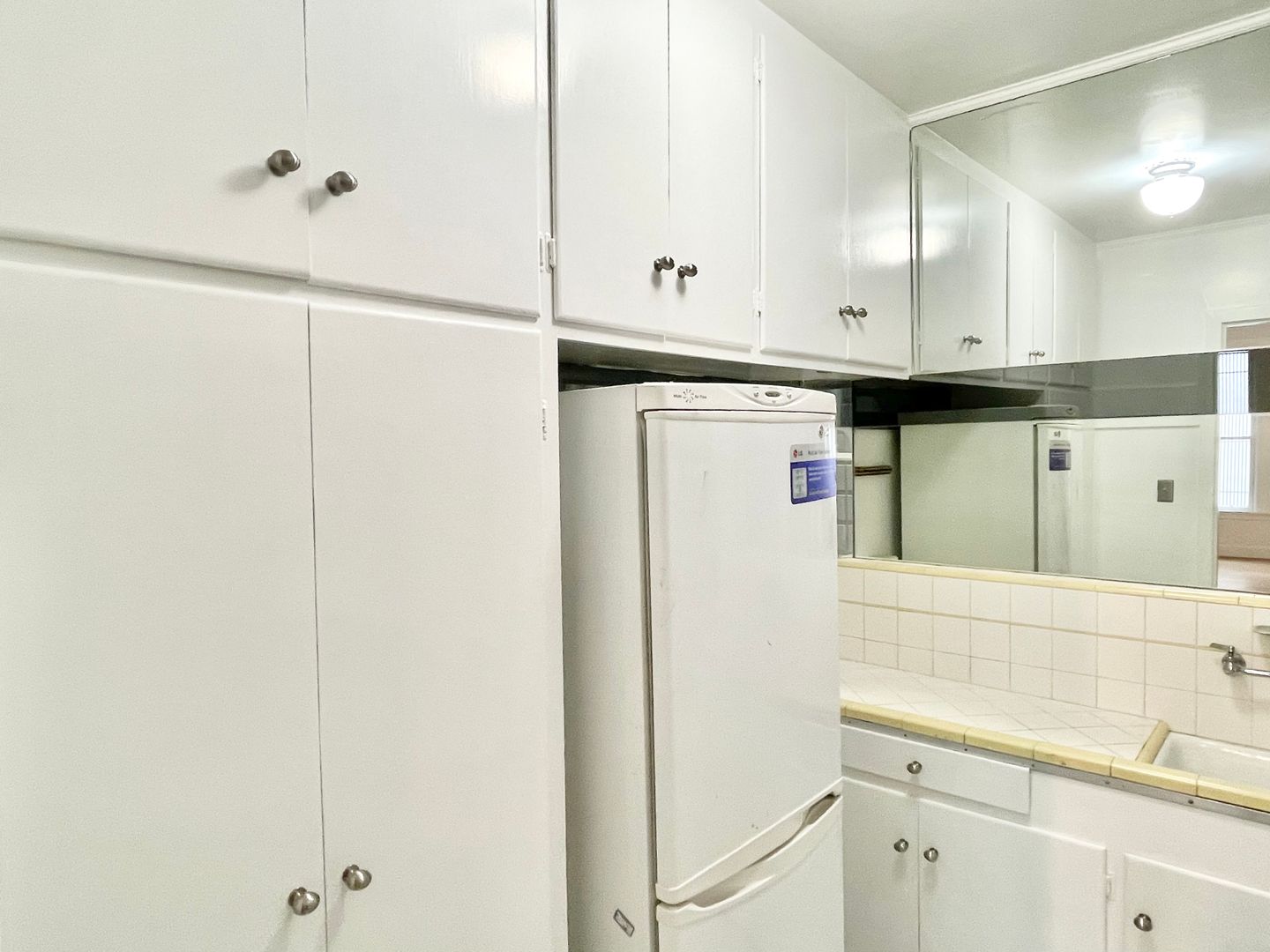 - Tile flooring in bathroom and kitchen