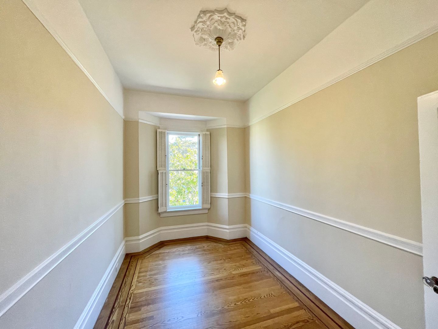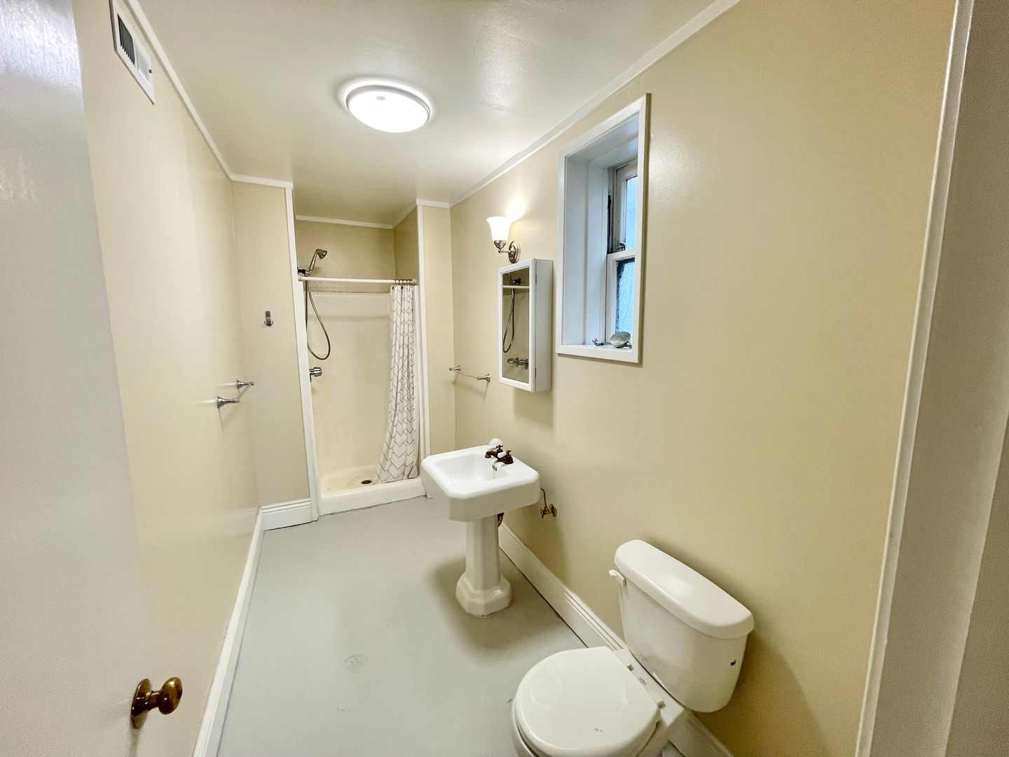 With its own private entrance, there is an in-law studio with updated bathroom with shower and pedestal sink. Great for visiting guests, a nanny, office, or yoga room!