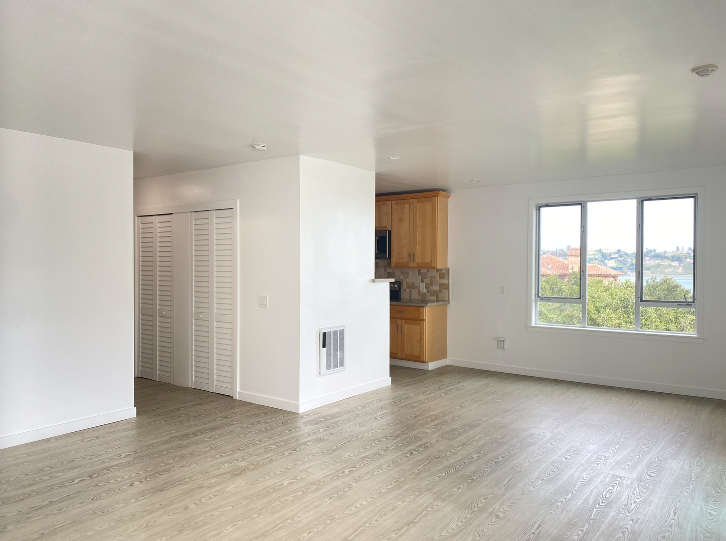 Lovely 2 Bedroom 1 Bath Apartment with breathtaking views of Angel Island, Belvedere and Richardson Bay from large living room, dining room, private deck with French doors.