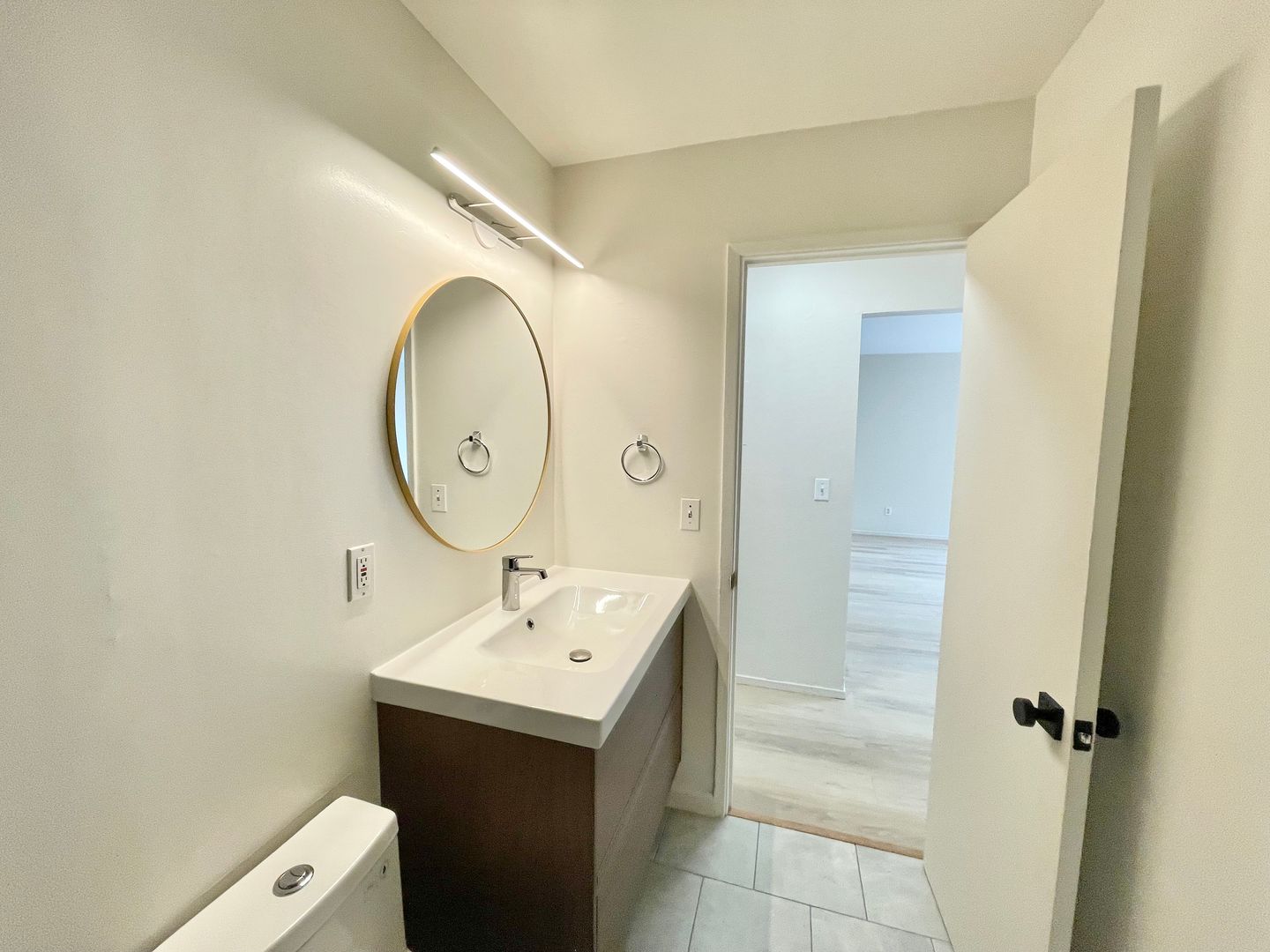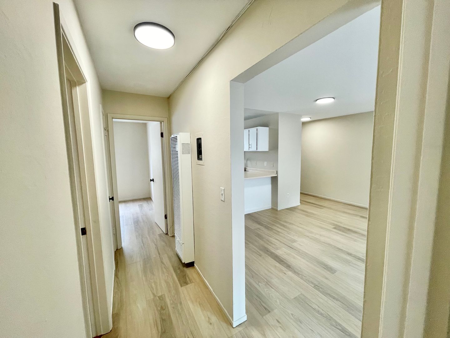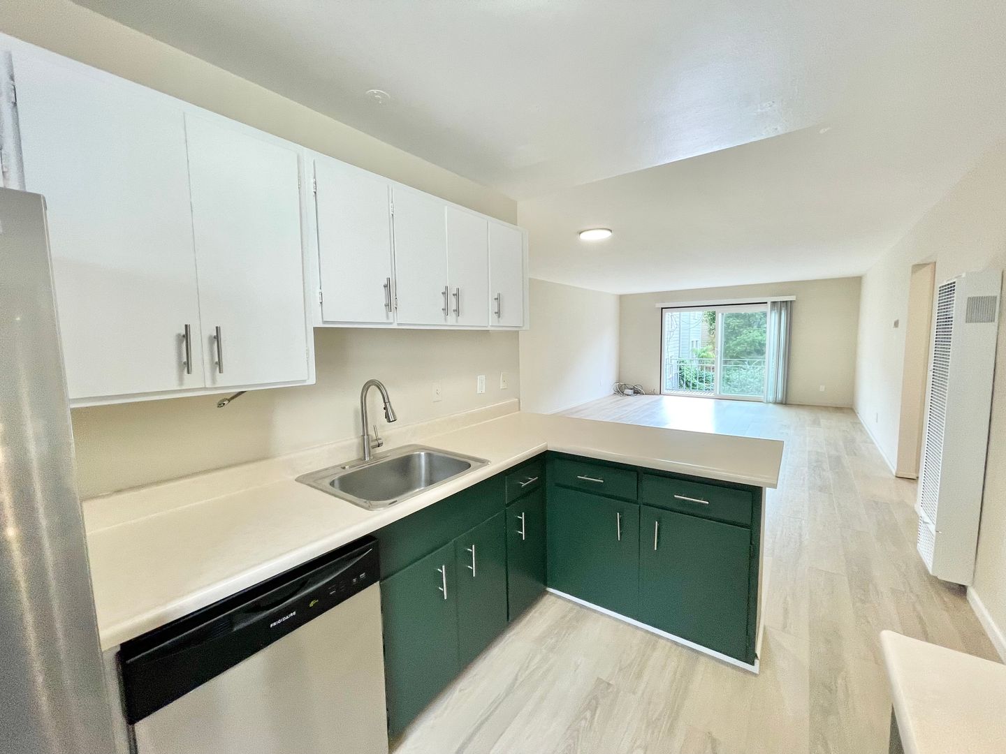 - Newly installed vinyl flooring