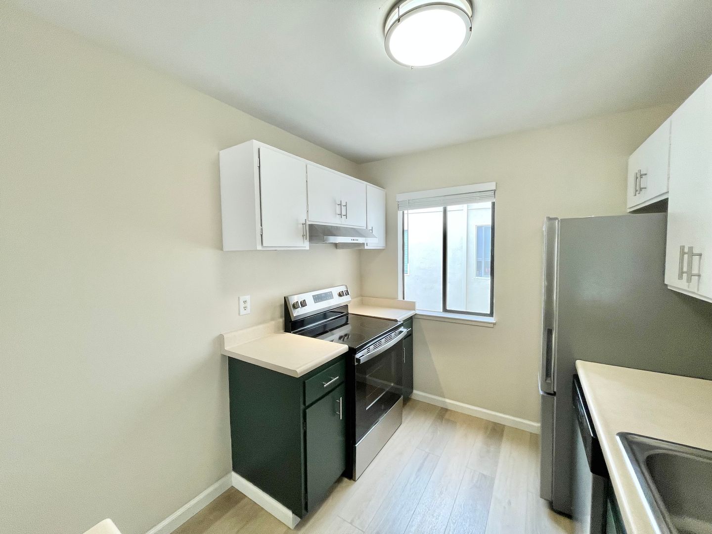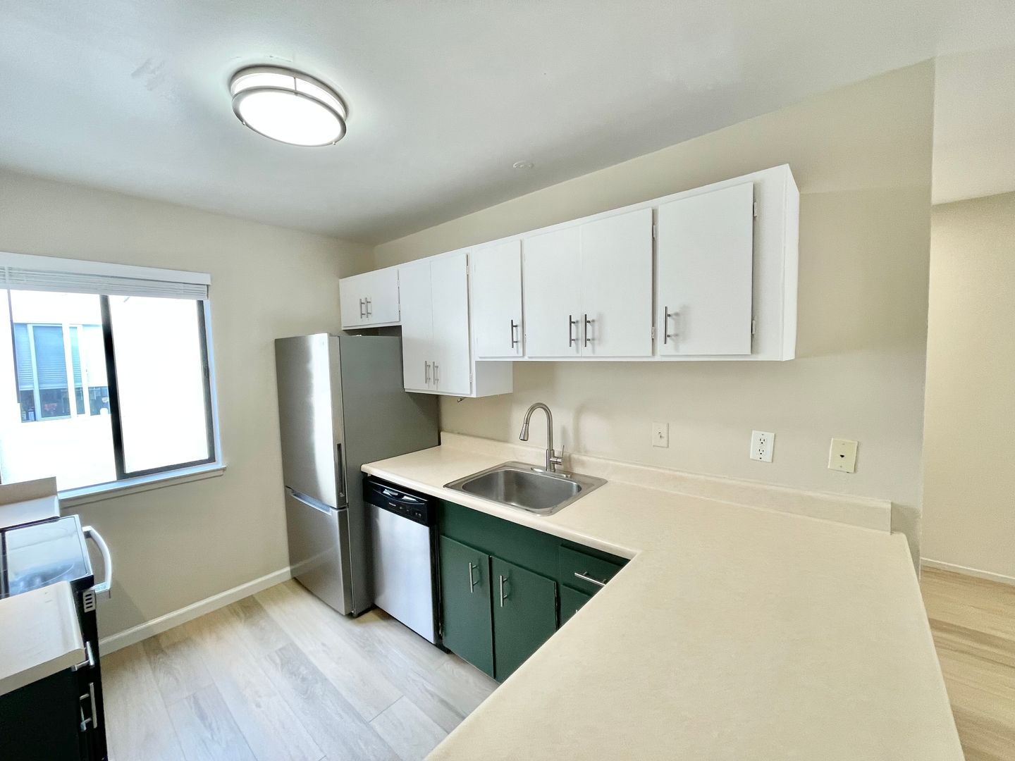 - Full kitchen equipped with new appliances and mounted sink