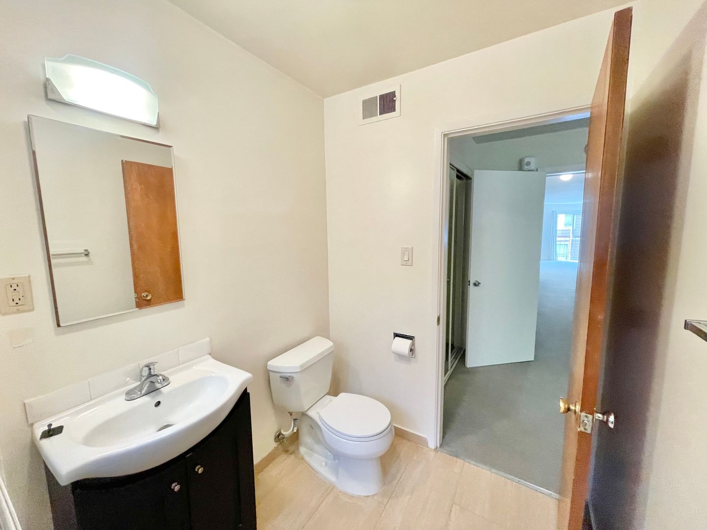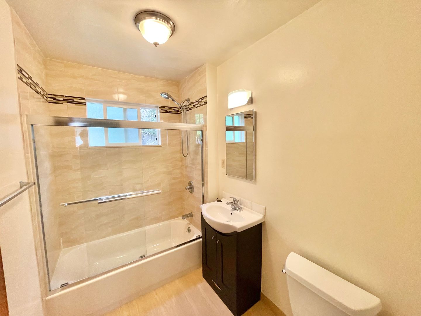 The bedroom has a good size closet and faces the rear of the unit, plus a renovated en suite bathroom with beautiful shower over tub.