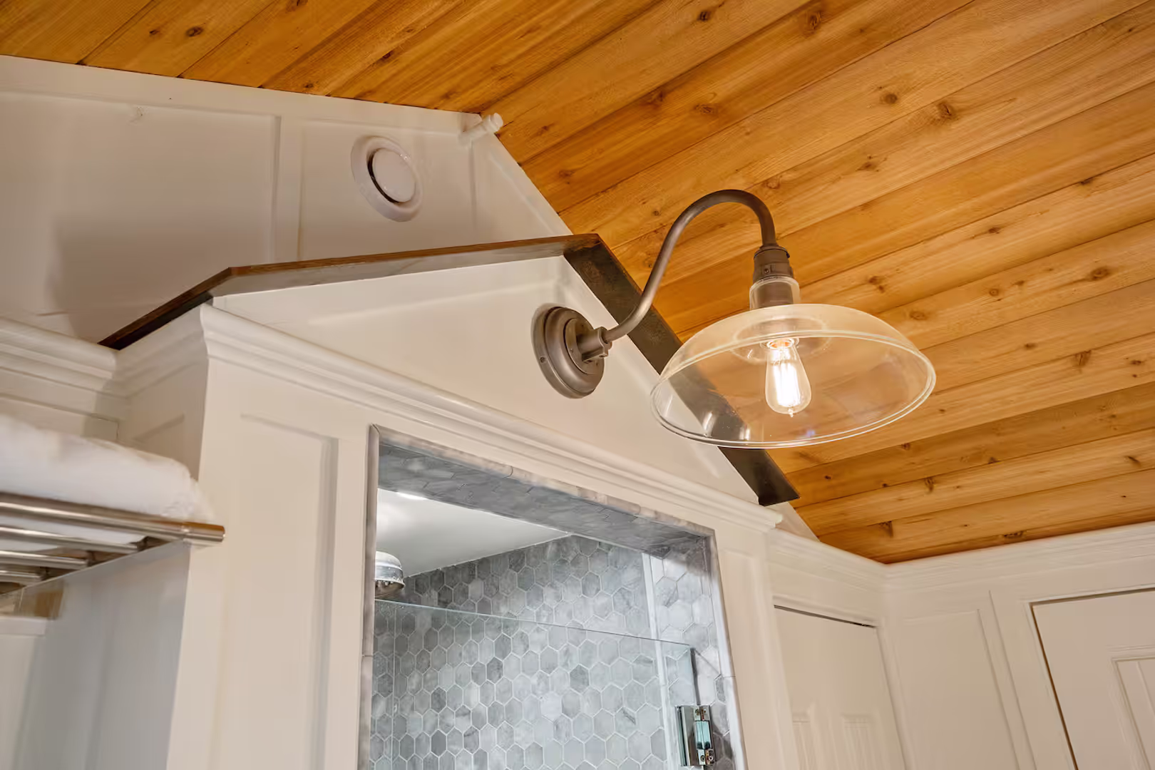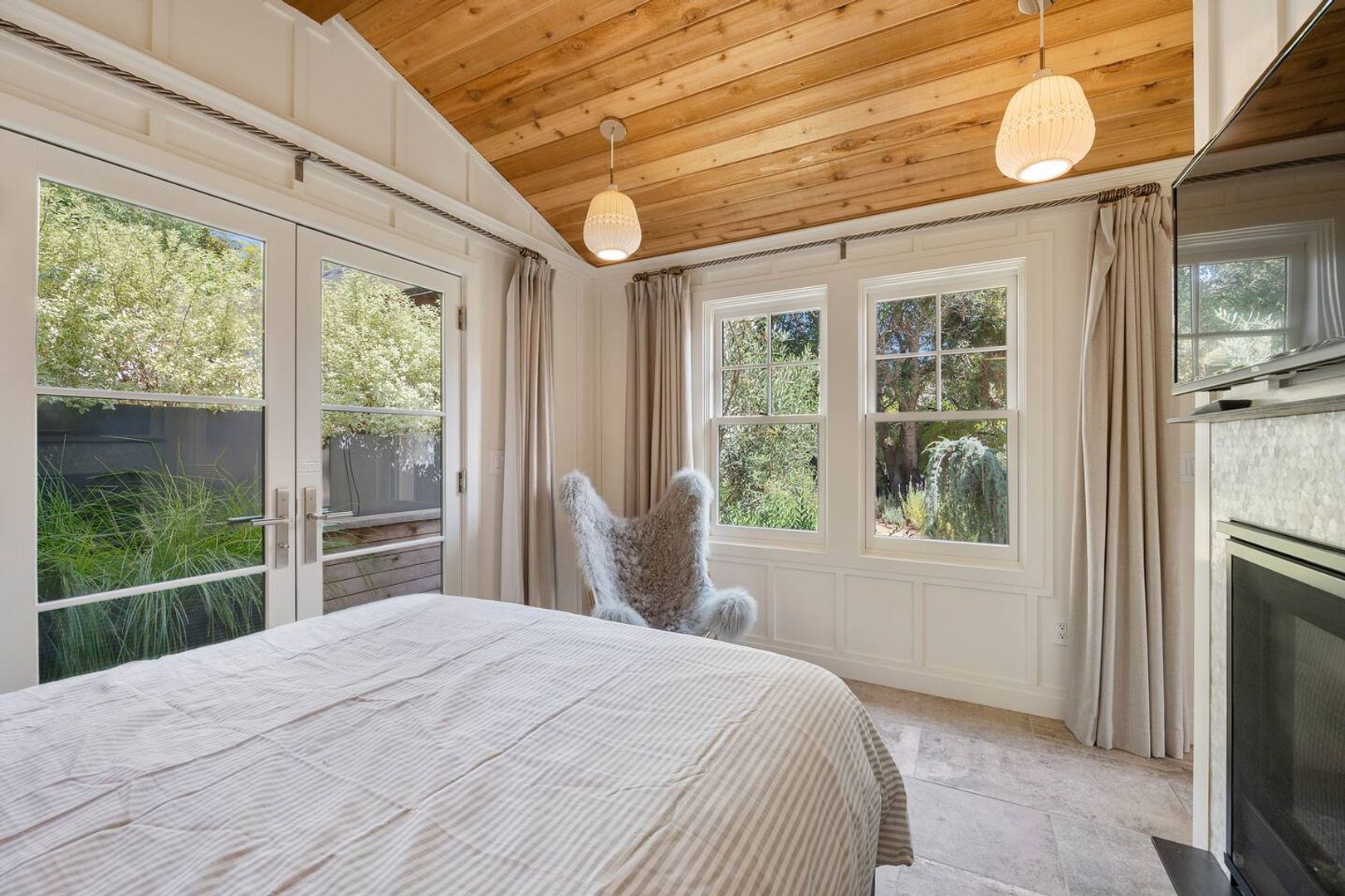 Cozy tucked away bedroom with a gas fireplace and a luxury spa like bathroom completes this storybook home!