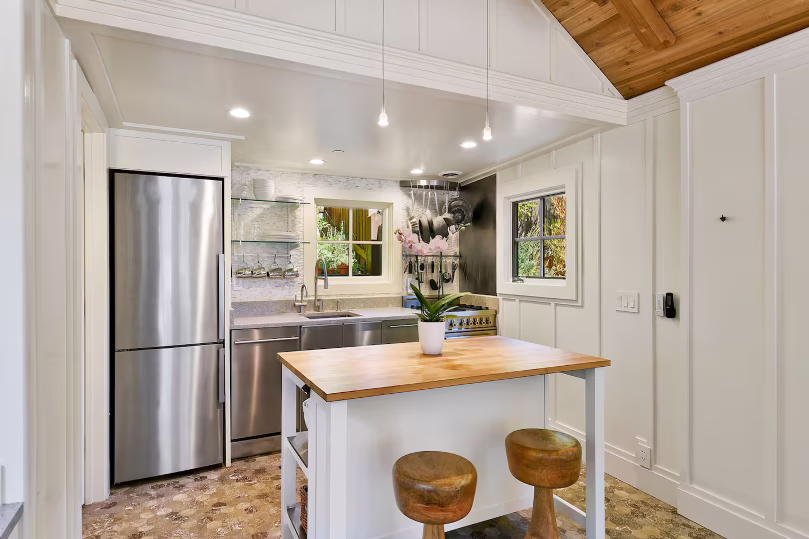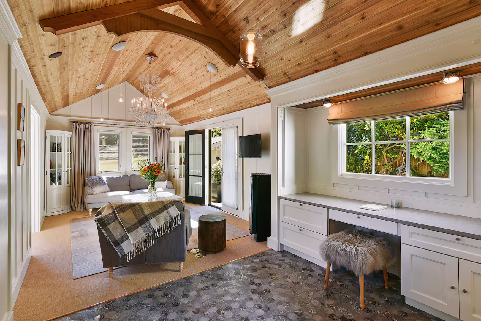 Cottage has been beautifully remodeled with the highest attention to detail, quality and high-end appliances, fixtures, furnishings, drapery.
