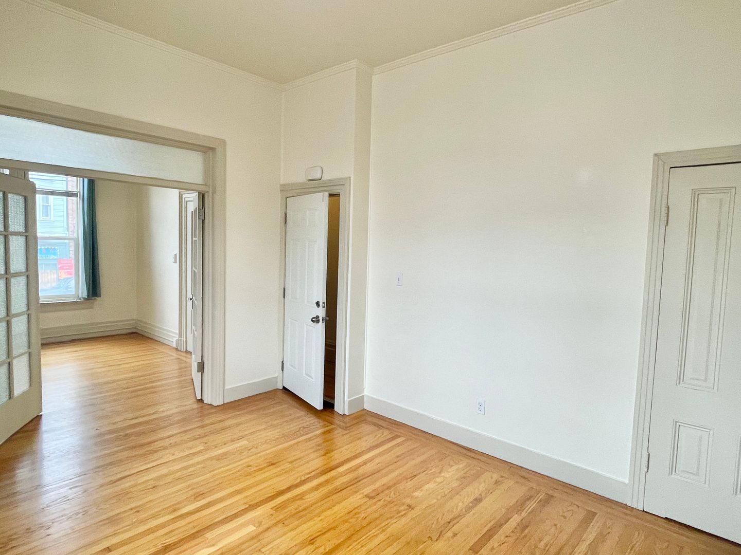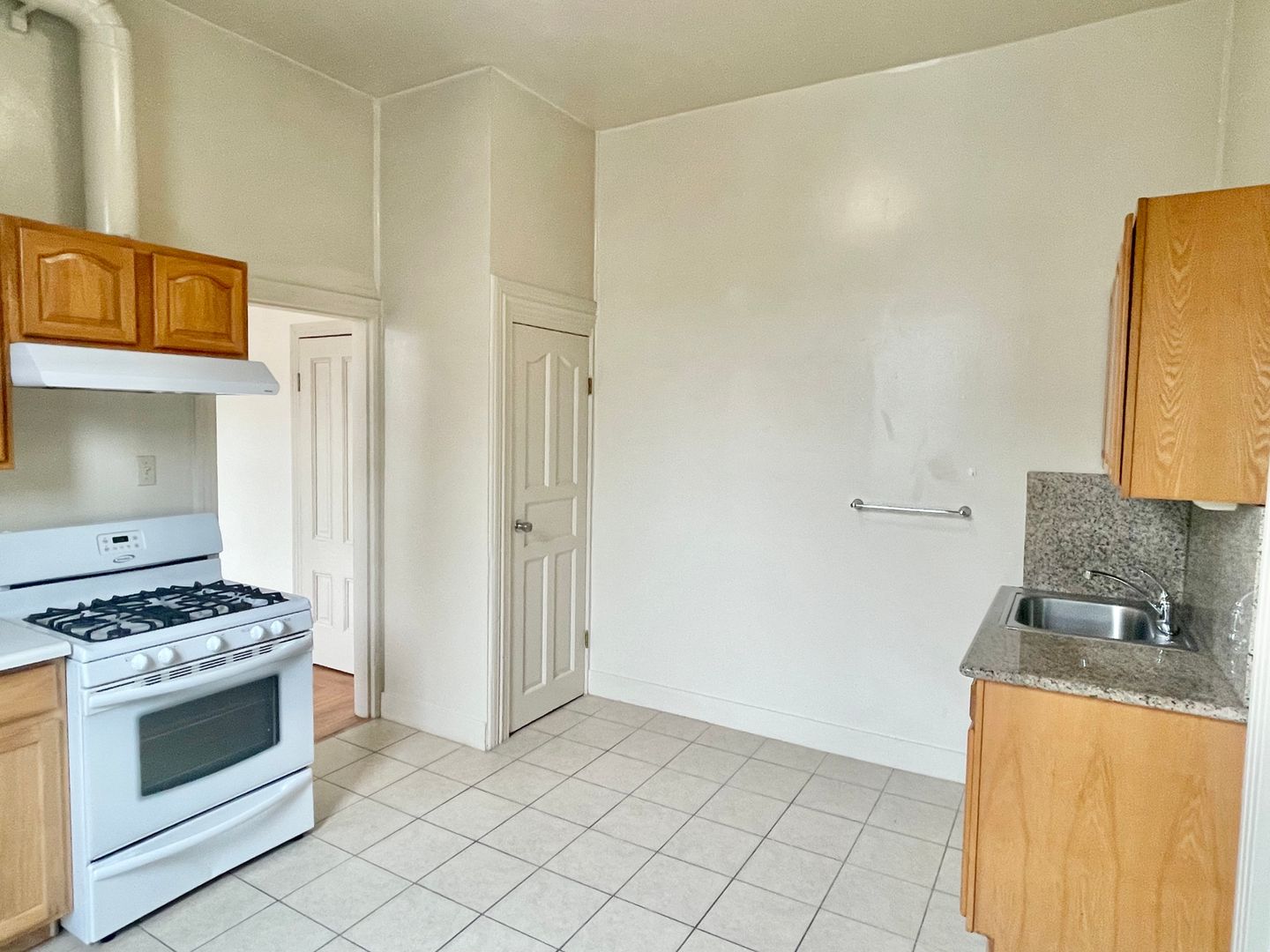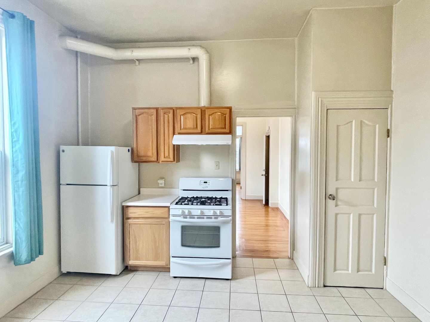 This spacious and bright, lower unit boasts hardwood floors, a living room and bedroom with large windows, an eat-in kitchen with gas stove, refrigerator, and oak cabinets. Common coin laundry and bike storage space are in the basement area.