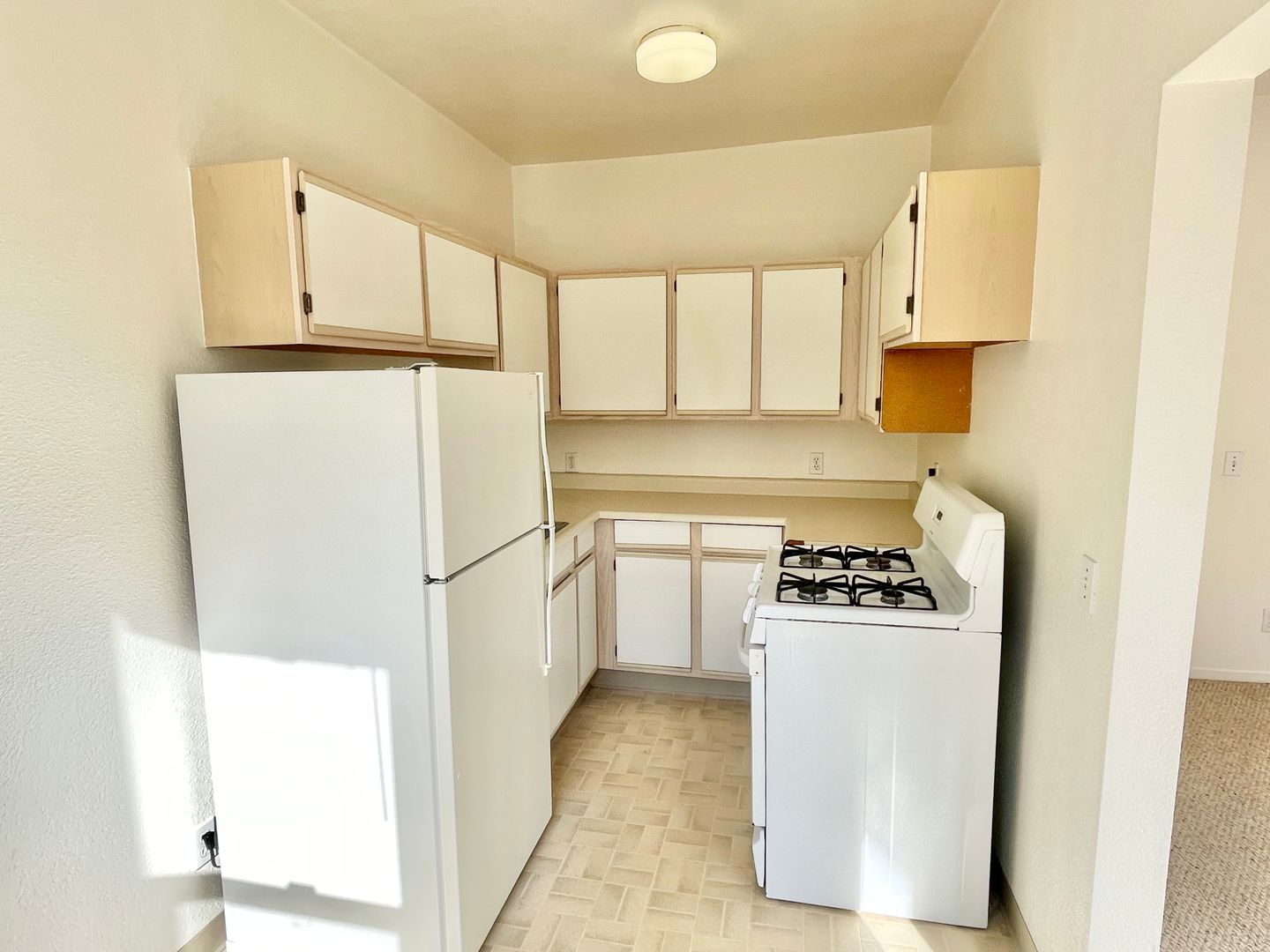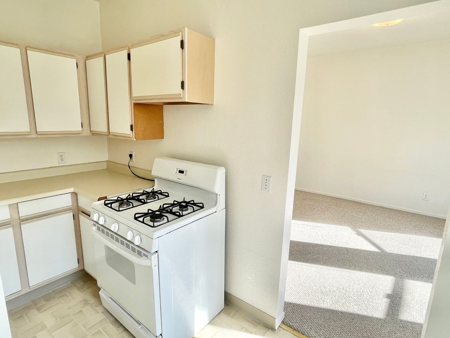 Nice sized kitchen with eat-in area, gas range, plenty of counter space, and ample storage, along with bike parking in the garage.