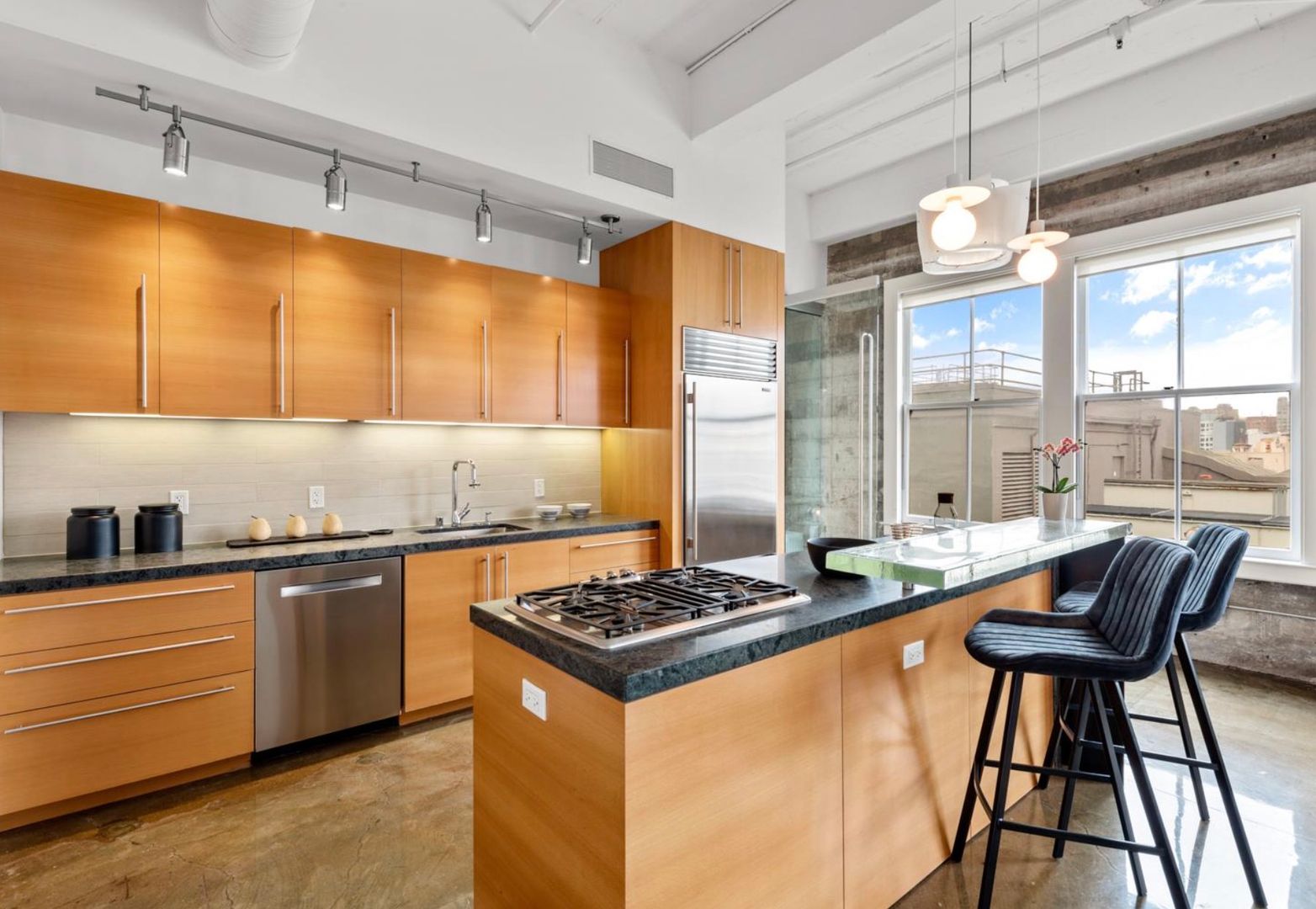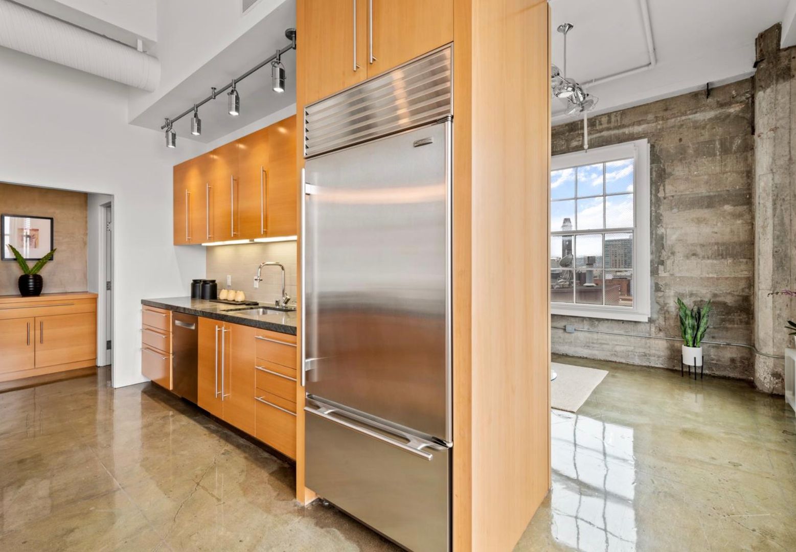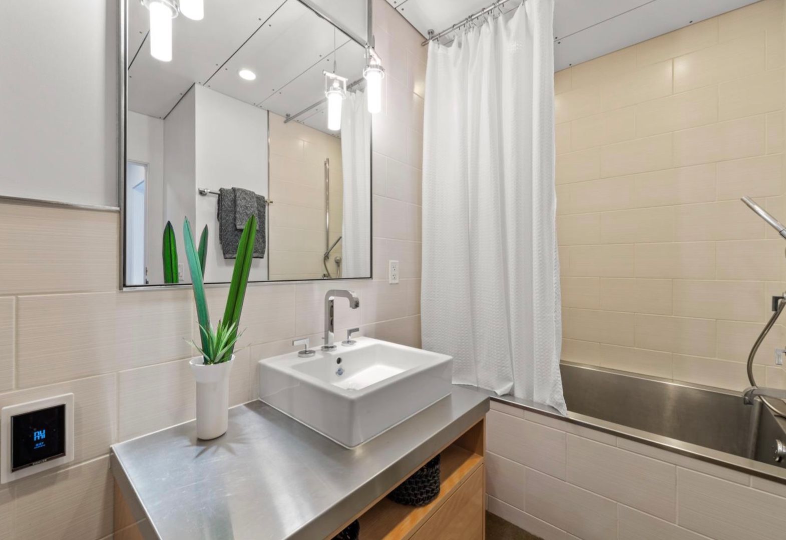 This enormous one bedroom historic penthouse boasts a glorious private rooftop deck and modern finishes, including polished concrete floors, a stunning chef’s kitchen and designer bathroom, while maintaining a distinct warehouse feel. PLUS expansive city views, in-unit washer/dryer, and option for one car parking.